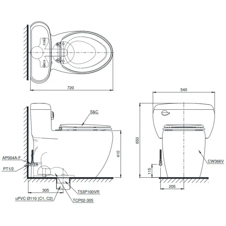 Thông tin bồn cầu TOTO MS366T7 1 khối