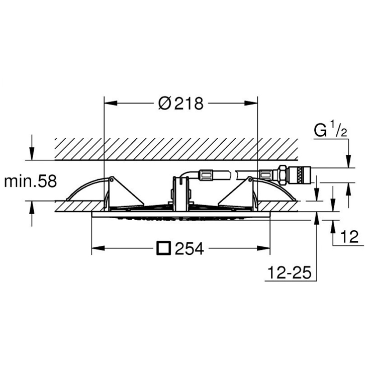 Bản vẽ kích thước bát sen 27467000 Grohe tròn âm trần