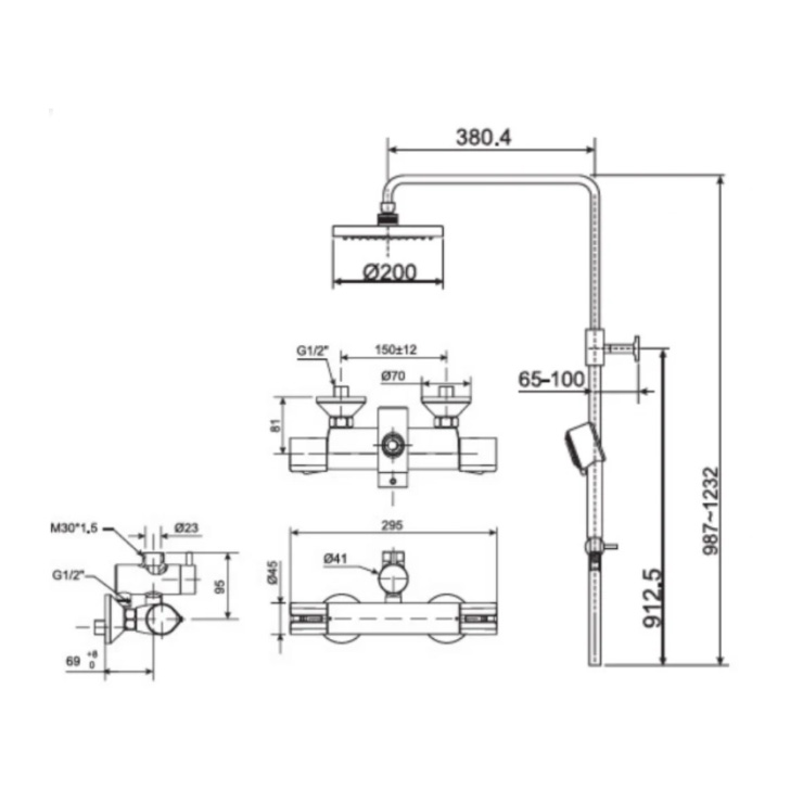 Bản vẽ kỹ thuật sen cây tắm American WF4948 D200
