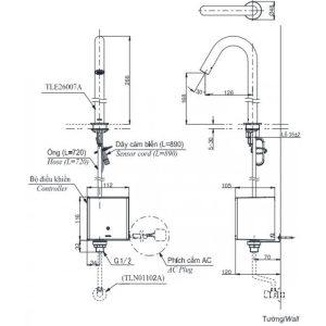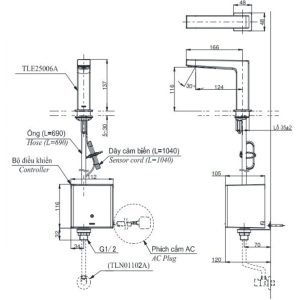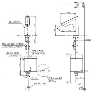 - Phù hợp lắp đặt với vòi cảm ứng: TLE20006A, TLE21006A, TLE22006A, TLE24006A ,…