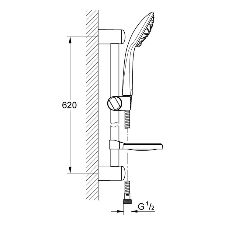 - Kích thước: thanh trượt sen: 620 mm