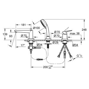 Bản vẽ kỹ thuật mặt bộ trộn âm ổn nhiệt Grohe 29126000 Smart Control