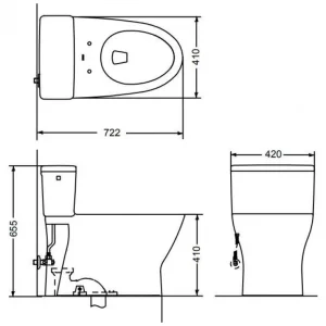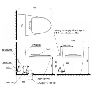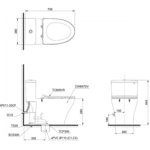 Bản vẽ bồn cầu 1 khối Inax AC 1017 VRN xả nhấn nắp êm