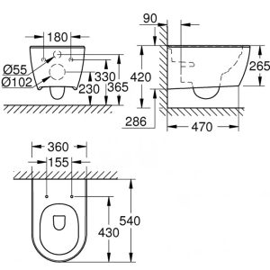 - Bàn cầu sử dụng 100% lượng nước xả từ phía trên, tạo nên dòng xoáy cực mạnh rửa trôi mọi vết bẩn.