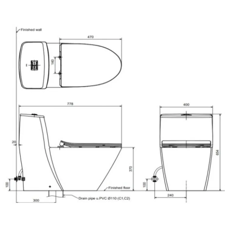 - Tên sản phẩm: Bồn cầu nắp rửa điện tử một khối