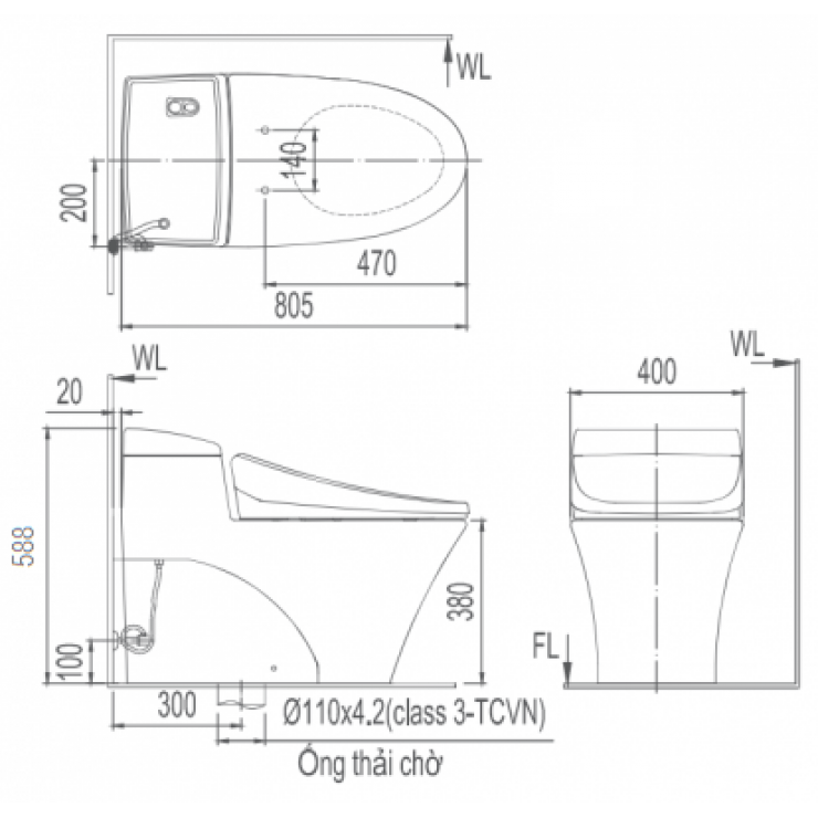 - Đã bao gồm van chặn nước LF-3KE, đế thải nước TR-SS