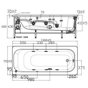Bản vẽ kích thước bồn tắm American 70271WT