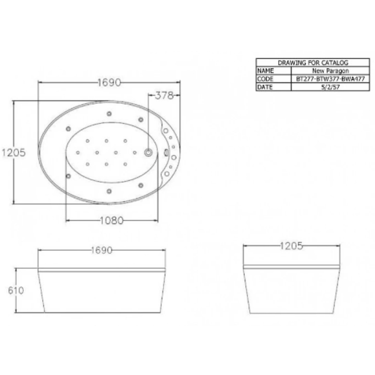 Bản vẽ bồn tắm massage BWA477PPH WH Cotto 1.7M