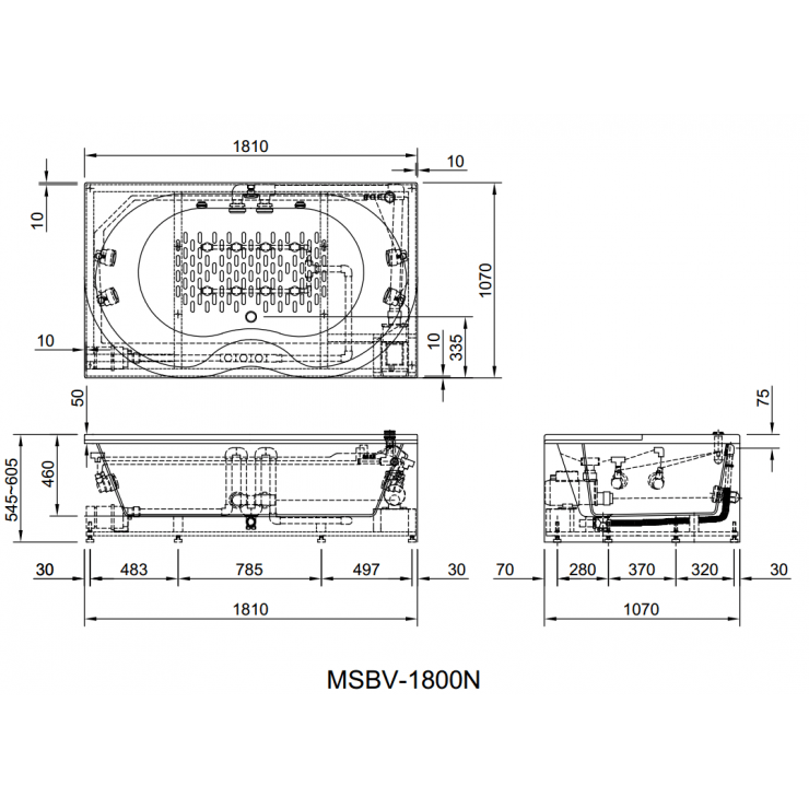 Bản vẽ kích thước bồn tắm massage Inax MSBV1700B