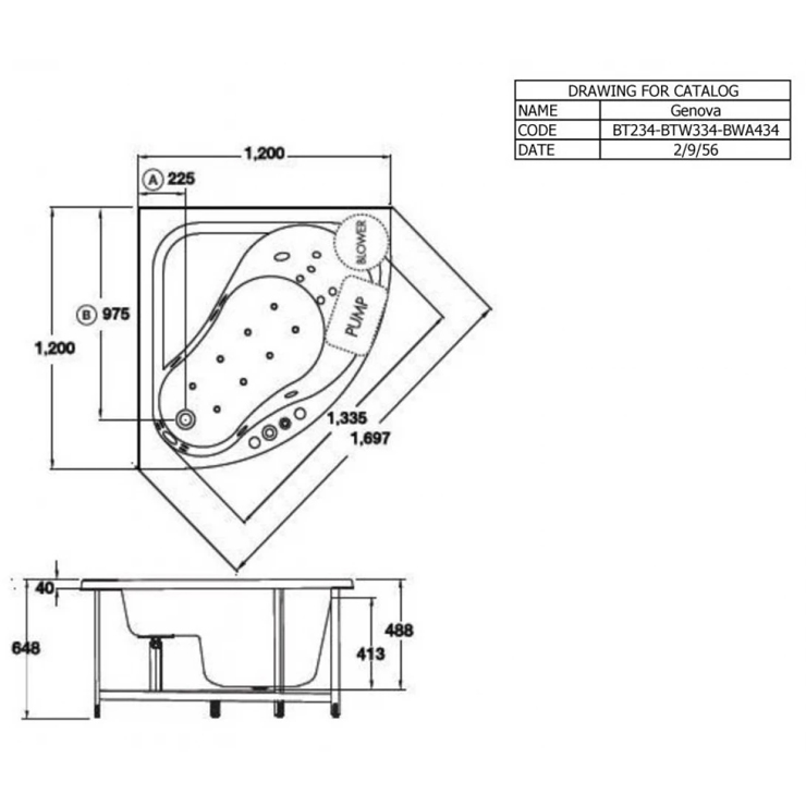 Bản vẽ bồn tắm cotto massage đặt sàn BWA 434 PP H WH