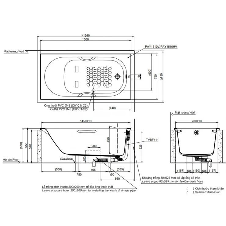 Bản vẽ kỹ thuật bồn tắm TOTO PAY1510V-TVBF411