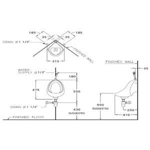 Bản vẽ kích thước bồn tiểu c 31207bi Cotto