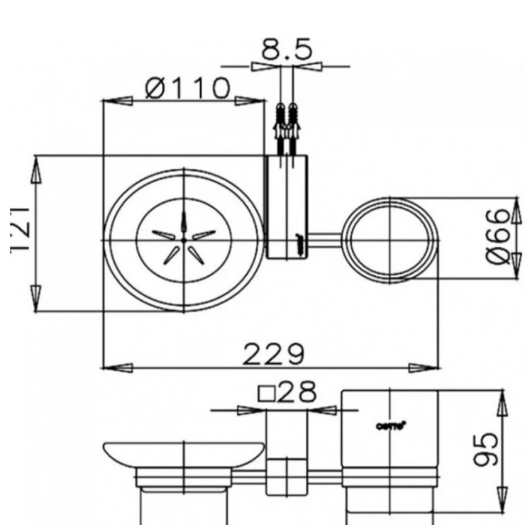 Bản vẽ kích thước kệ ly kết hợp dĩa đựng xà phòng COTTO ct 887 hm