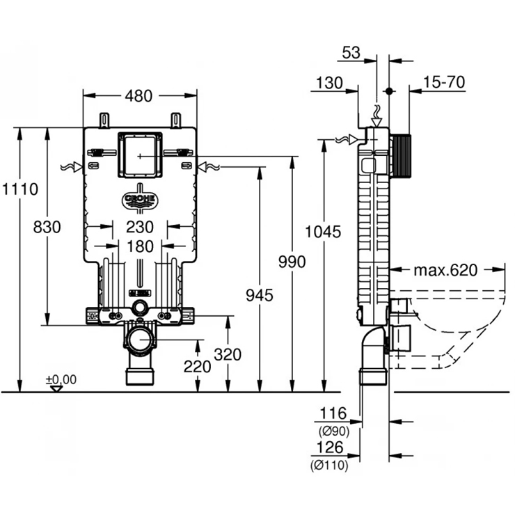 Bản vẽ két nước âm tường 38643001 Grohe