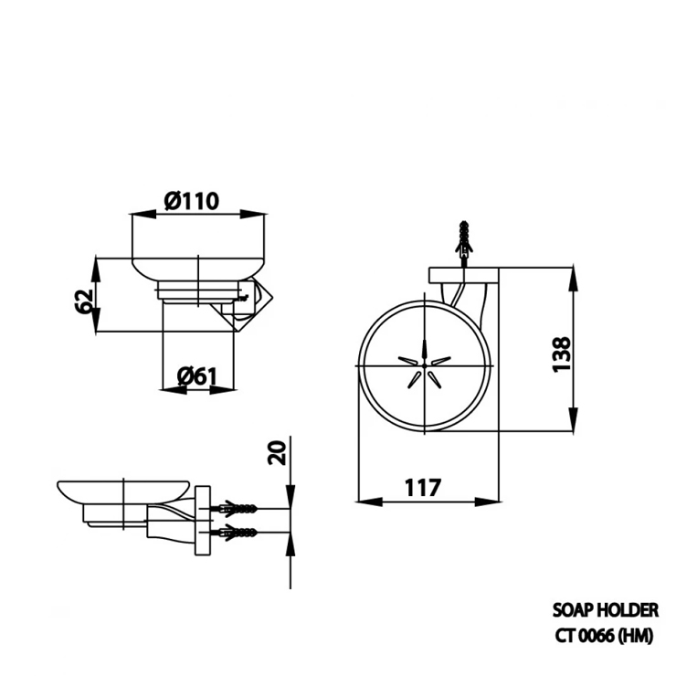 Bản vẽ kích thước khay xà bông cotto CT0066 GR HM
