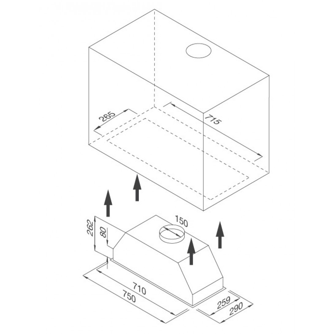 Bản vẽ kỹ thuật máy hút mùi âm tủ MH 750BI Malloca