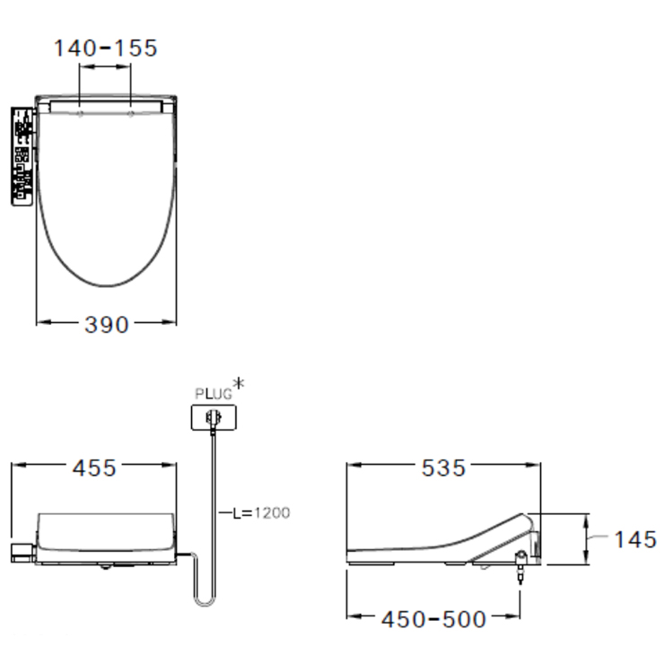 Bản vẽ kích thước nắp rửa điện tử C 9203 Cotto