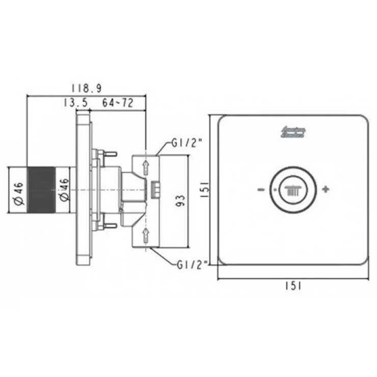 - Kích thước: 151 x 151 mm