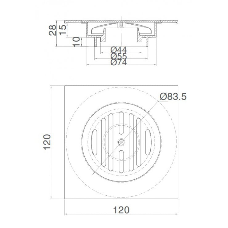 Bản vẽ kỹ thuật phểu thoát sàn Inax PBFV120