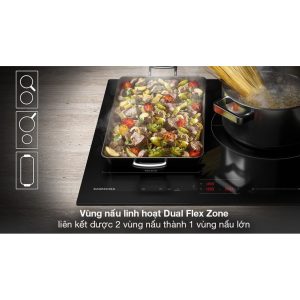 - Bếp từ thiết lập được vùng nấu linh hoạt Dual Flex Zone biến 2 vùng nấu đơn thành 1 vùng nấu lớn cho bạn chế biến món ăn được với các kiểu nồi chảo dài, hình bầu dục trong khi vẫn đảm bảo nhiệt lượng được phân bổ đồng đều.