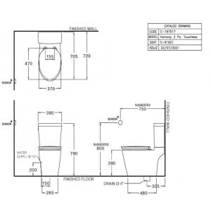 Bản vẽ kích thước bồn cầu C 167517 Cotto 2 khối