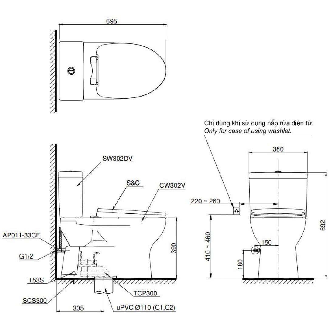 Thông tin bồn cầu TOTO CS302DW11 nắp rửa điện tử