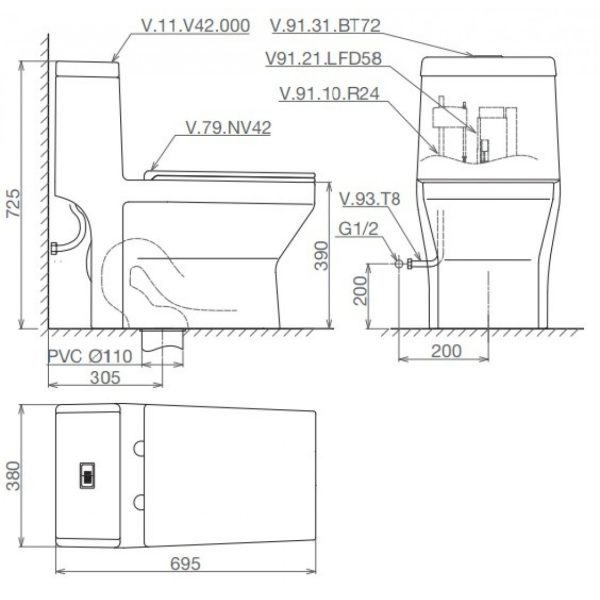 Bản vẽ bệ xí bệt V42 Viglacera 1 khối