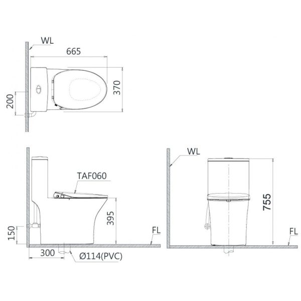 Bản vẽ kích thước bàn cầu Caesar CD1391+TAF060
