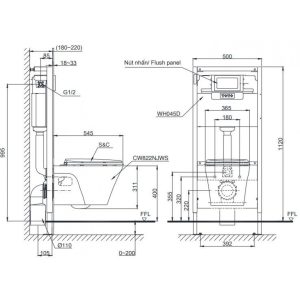 Thông số thân bồn cầu treo tường TOTO CW822RA