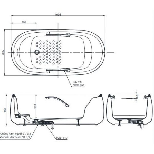 Thông tin cơ bản bồn tắm TOTO PJY1744PWEN#GW/TVBF412 đá cẩm thạch