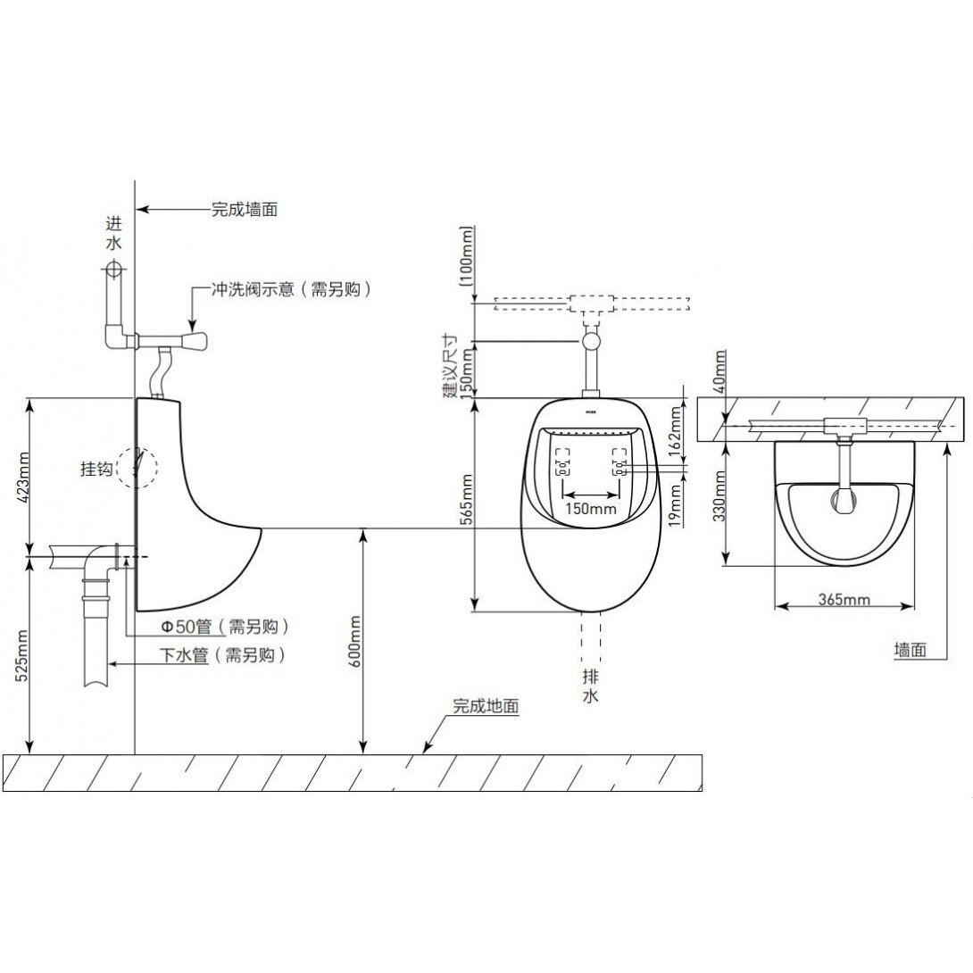 Bản vẽ kích thước bồn tiểu SW 6092 SP Moen treo tường