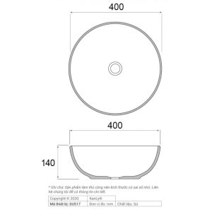 Bản vẽ kích thước chậu lavabo SU 517 tròn màu xám