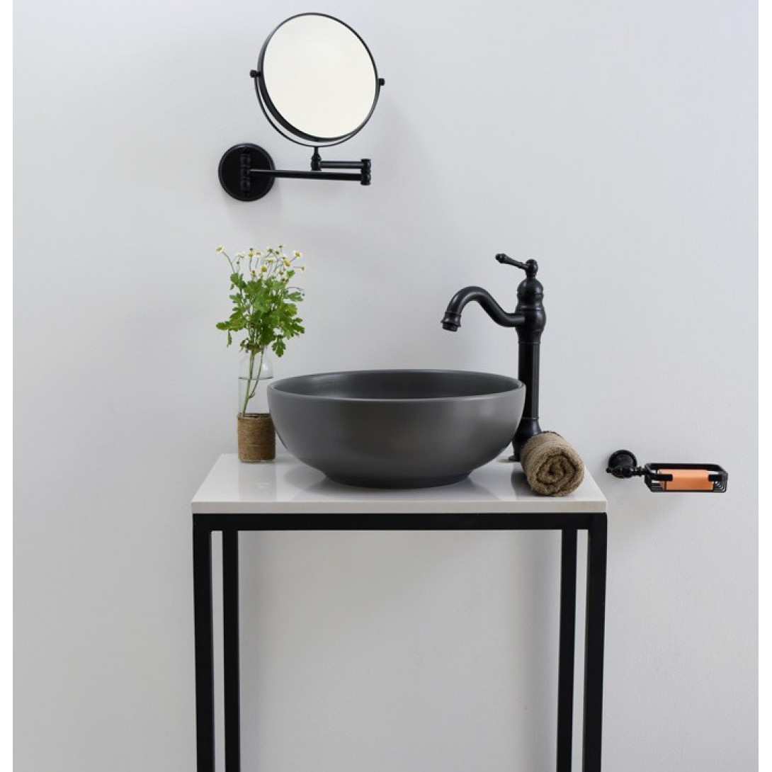 - Lavabo sứ màu xám mờ mịn, thể hiện nét thanh lịch, tinh tế và sang trọng, phù hợp với những ý tưởng thiết kế không gian kiến trúc theo phong cách Châu Âu