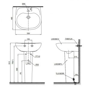 Bản vẽ bồn rửa mặt TOTO LPT236 CS