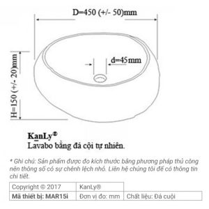 Bản vẽ kích thước chậu rửa mặt đá tự nhiên Kanly MAR15V