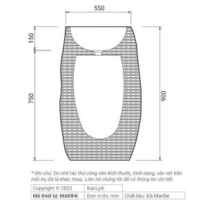 Bản vẽ kích thước lavabo trụ đứng tự nhiên Kanly MAR84i