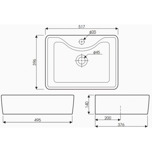 Bản vẽ kích thước chậu rửa lavabo LD 01 đặt bàn