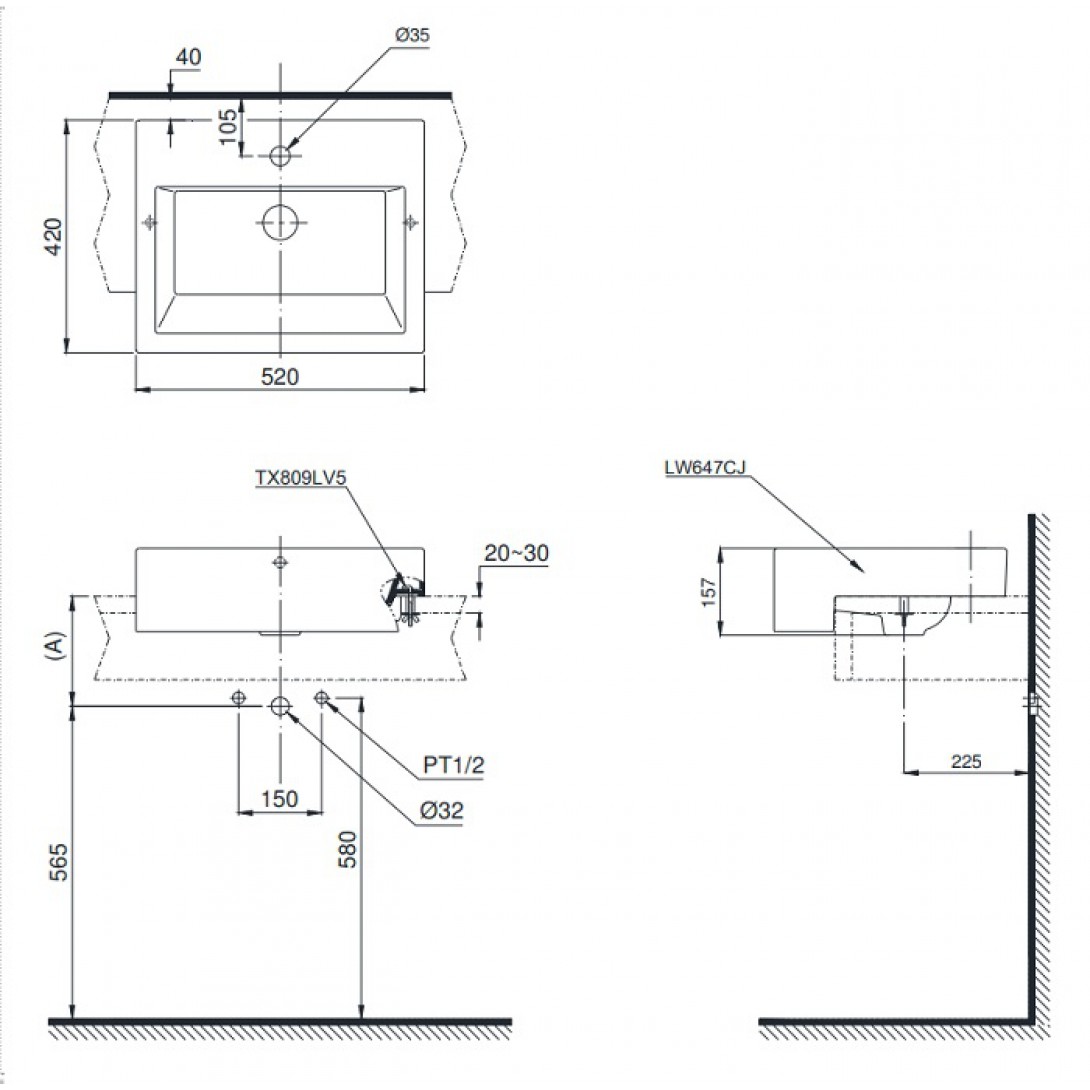 Bản vẽ bồn rửa mặt lavabo TOTO LW647CJW/F