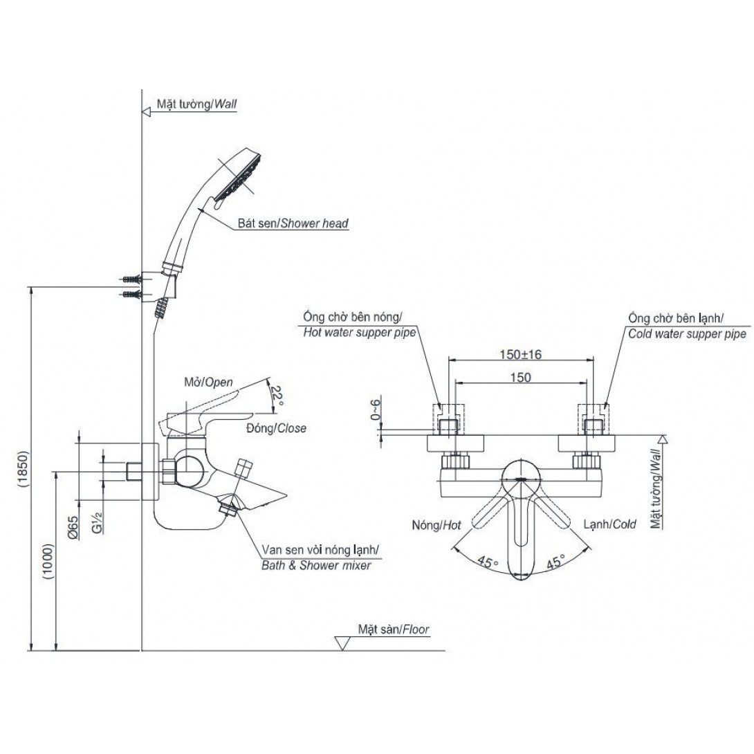 - Áp lực nước 0.05MPa ~ 0.75MPa