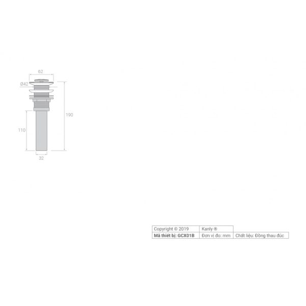 Đầu xả Lavabo, bộ xả, nút xả GCX01B được làm từ đồng thau chắc chắn, thiết kế các khớp nối có gioăng cao su kín để có thể sử dụng lâu dài mà không bị rò rỉ nước thải.