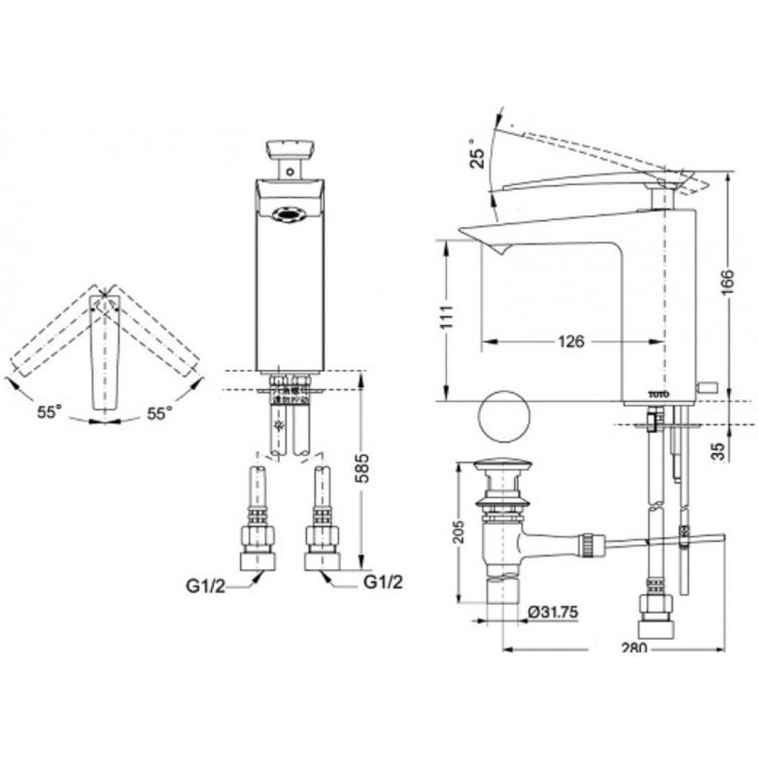 Bản vẽ vòi chậu rửa mặt lavabo TOTO DL 320R