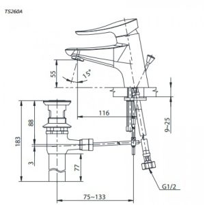 Bản vẽ vòi lavabo nóng lạnh TOTO TS260A