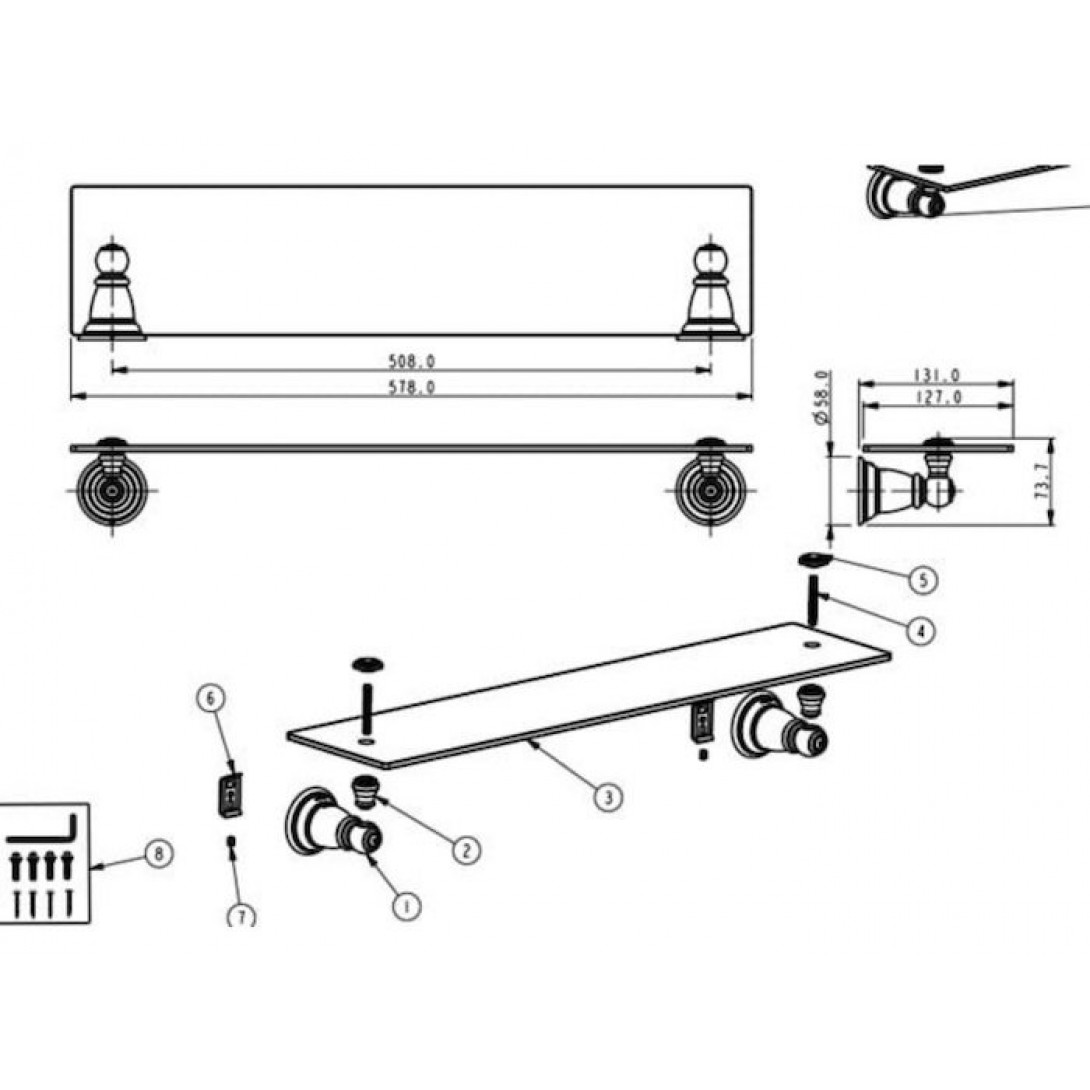 Bản vẽ kích thước kệ kính ACC 1508SRN MOEN