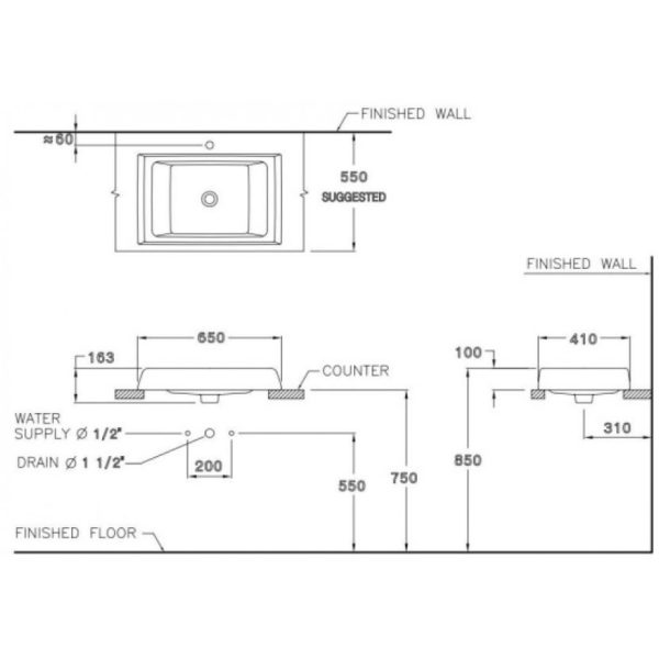 Bản vẽ kích thước chậu lavabo Cotto C00247
