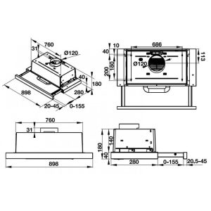 Bản vẽ kỹ thuật máy hút mùi âm tủ 539.81.085 Hafele