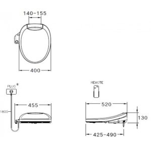 Bản vẽ kích thước nắp rửa điện tử C 9207 Cotto
