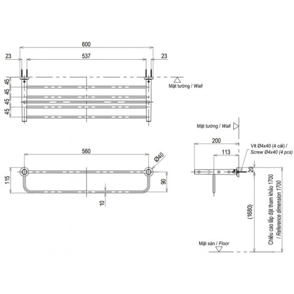 Bản vẽ kệ khăn 2 tầng TOTO YTS406