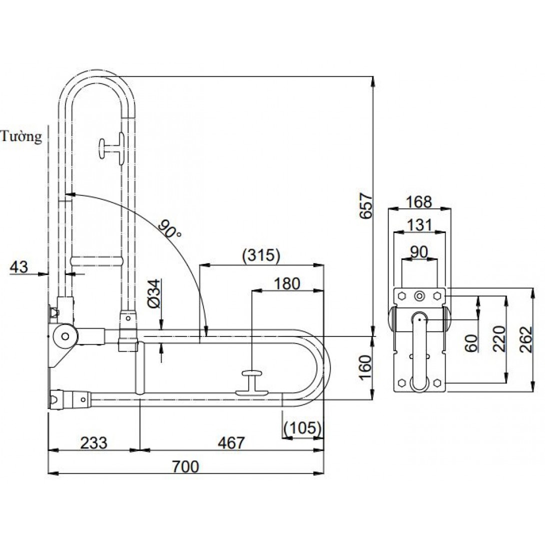 - Tên sản phẩm: Thanh tay vịn (loại có thể bật lên)