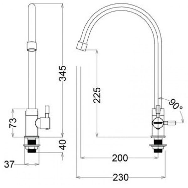 Bản vẽ kích thước vòi rửa chén Caesar K035 C