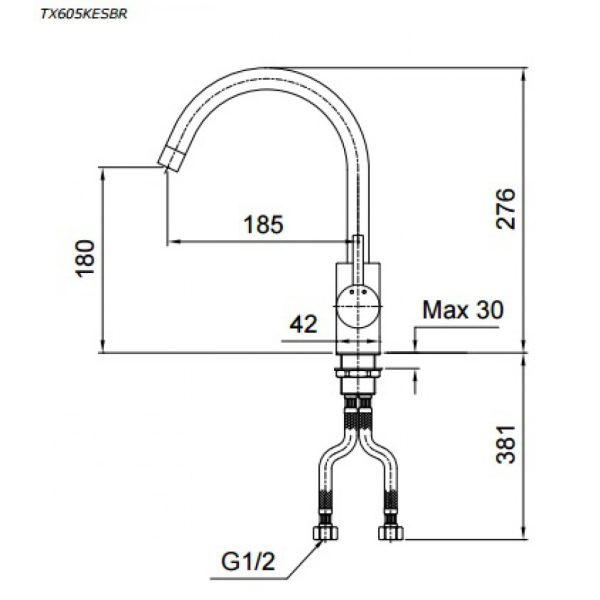 Bản vẽ vòi bếp nóng lạnh TX605KESBR TOTO